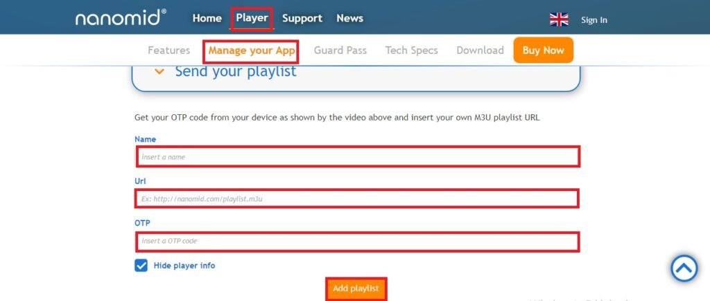 Étape 7= Visitez maintenant le site Web http://www.nanomid.com/nanoplayer