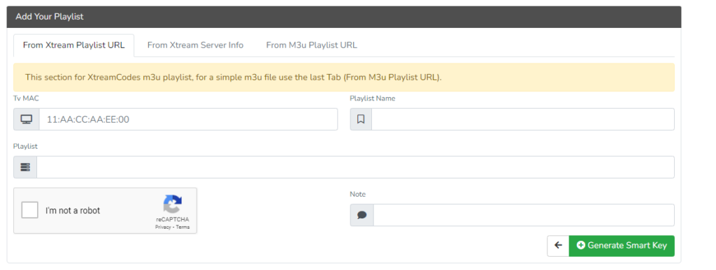 5. Ajouter le lien m3u et cliquer sur I’m not a robot