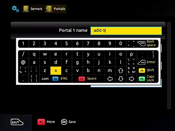 - Appuyez sur la touche KB de votre télécommande pour marquer du texte dans la ligne « Portal 1 URL »